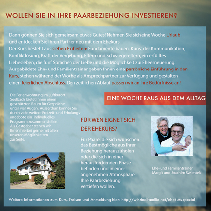 Die Zeit zu zweit richtet sich an Paare, die das bestmögliche aus Ihrer Beziehung herausholen wollen.